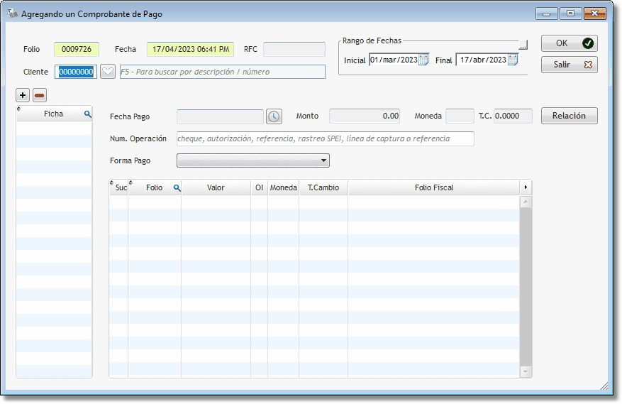 Cliente: Ingresar o Seleccionar del catálogo el cliente correspondiente.