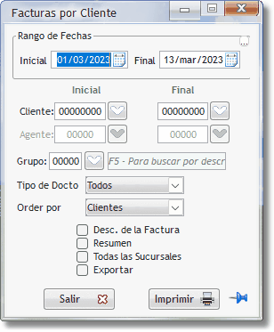 Reporte de Facturas por cliente.