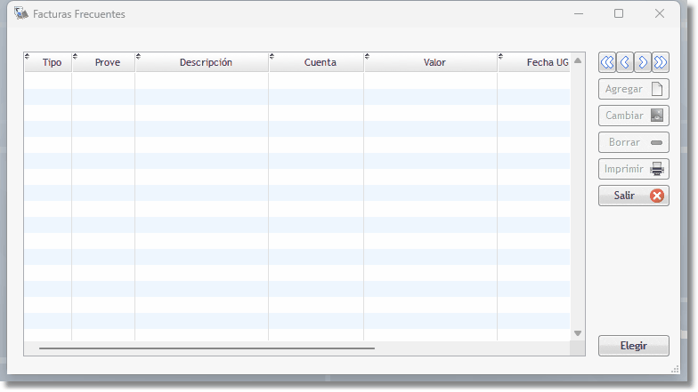 b) Generar factura a partir de...: Muestra una lista de facturas frecuentes, la informacion de ésta es vaciada en la nueva factura, lo que permite en lugar de capturar, actualizar valores.