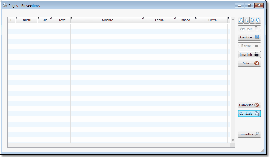 Visor que muestra los registros después de haber generado los pagos a proveedores en Operación \ Genera pago a Proveedores