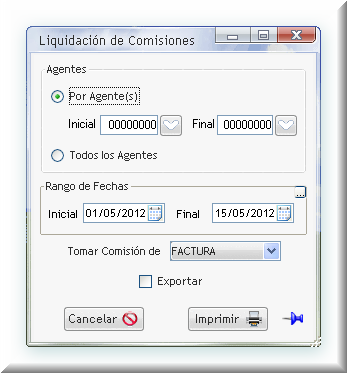 Tomar Comisión de : Las opciones son Factura, Cliente, Agente o Zona